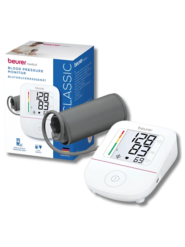 Le Beurer BM23 inclut la détection des arythmies et un indicateur de risque à code couleur pour interprétation rapide des mesures. L’arrêt automatique prolonge la durée de vie des piles et l’indicateur de remplacement signale quand les batteries sont faibles.
