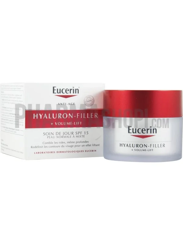Eucerin Hyaluron-Filler Soin de jour volumisateur Soin de jour nourrissant et volumisateur à base de Magnolol, d’Oligo Peptides et d’Acide Hyaluronique qui lutte contre les différentes causes responsables de la perte de volume pour peaux sèches avec protection UVA/UVB SPF 15
