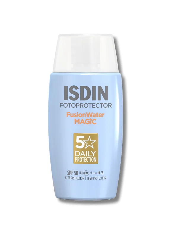 ISDIN Photoprotection Fusion Water Magic SPF50+ est un écran solaire innovant offrant une très haute protection contre les rayons UVA et UVB. Adapté à tous les types de peau, il se distingue par sa texture ultra-légère et fluide qui pénètre rapidement, sans laisser de film gras.